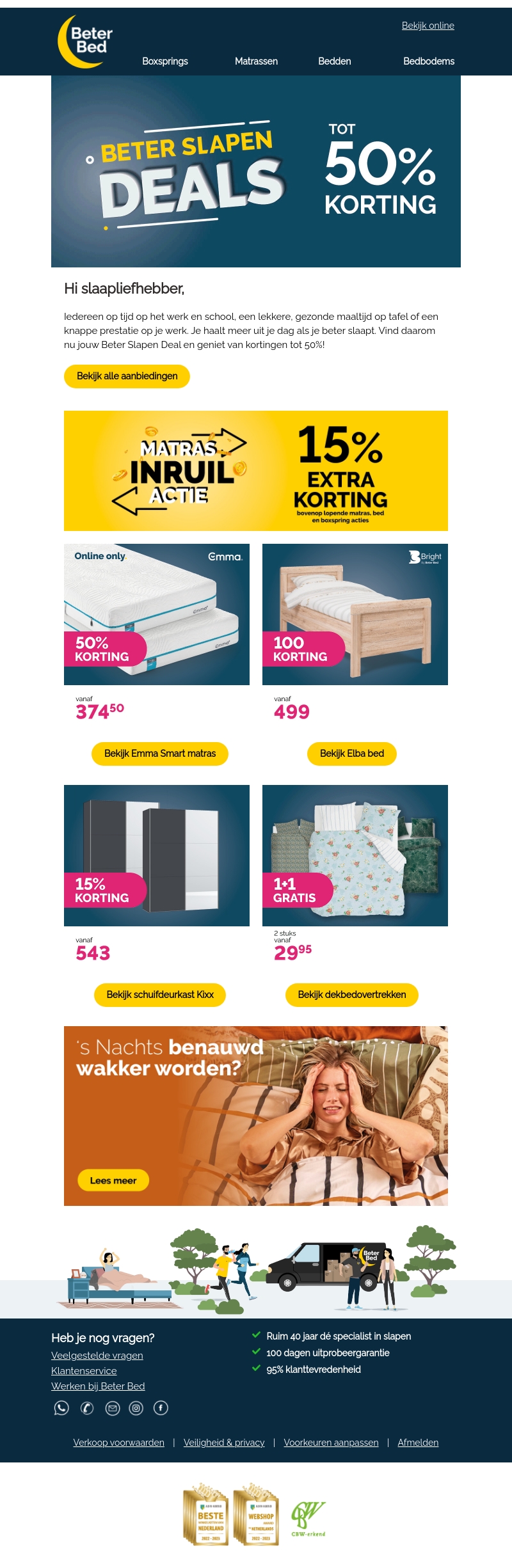 Hoi slaapliefhebber, haal meer uit je dag met betere slaap! Profiteer nu van Beter Slapen Deals bij Beter Bed met kortingen tot 50%. Ontdek Emma matrassen, Elba bedden en meer. Geniet van extra kortingen en aanbiedingen.