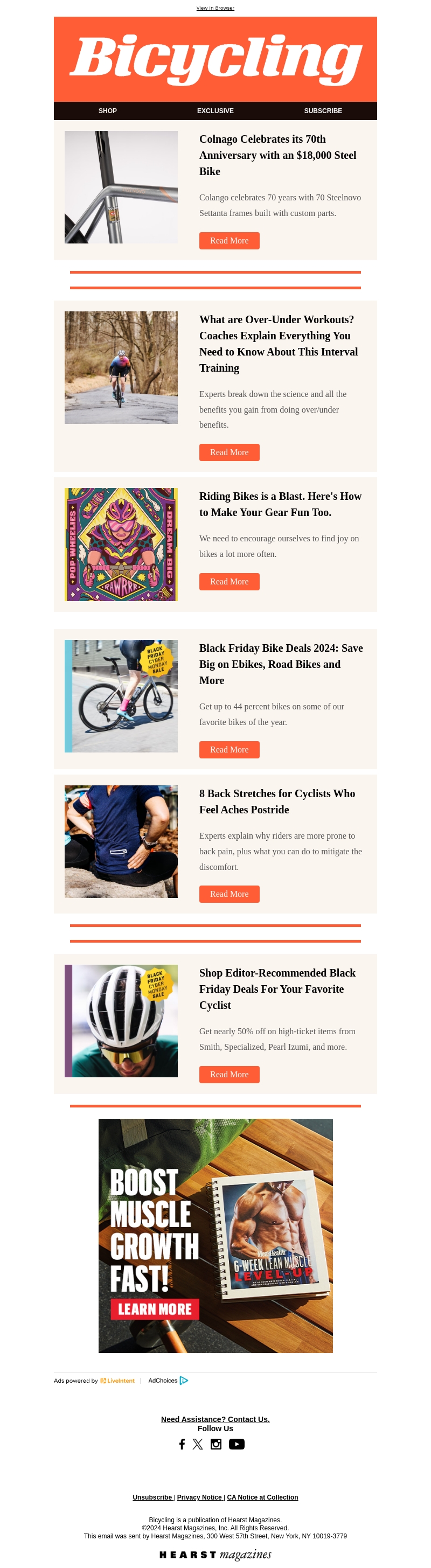 Colnago viert zijn 70e verjaardag met een exclusieve lancering van een $18,000 stalen fiets. Maak kennis met de Steelnovo Settant frames, speciaal vervaardigd met op maat gemaakte onderdelen. Daarnaast biedt de nieuwsbrief tips over fietsplezier, trainingen en de beste Black Friday deals voor fietsuitrustingen.