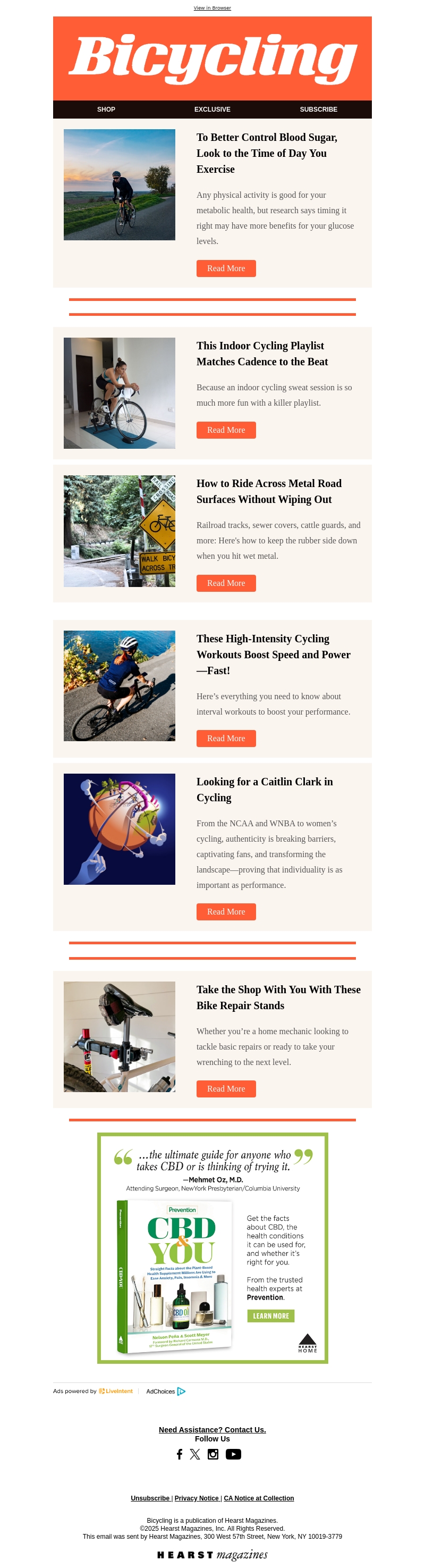 Deze nieuwsbrief van Bicycling legt uit hoe de timing van je fysieke activiteit een groot verschil kan maken in de beheersing van je bloedsuikerspiegel. Dit inzicht kan je helpen om niet alleen je gezondheid te verbeteren maar ook je algehele welzijn te verhogen. Lees verder voor tips en inzichten!