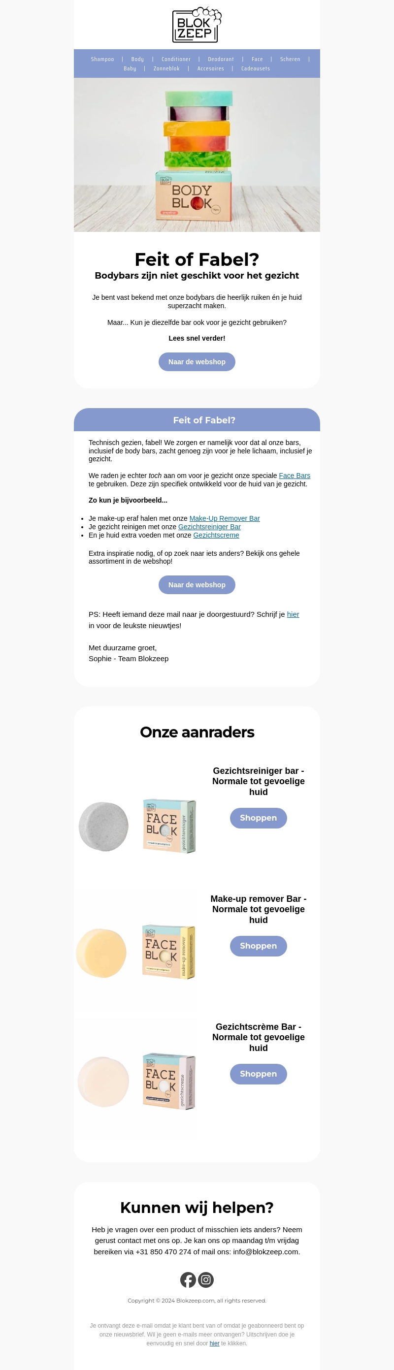 Verken de mythe of feit over het gebruik van bodybars op je gezicht. Blokzeep biedt speciaal ontwikkelde Face Bars die zacht genoeg zijn voor een delicate gezichtsverzorging. Leer hoe je je huid kunt reinigen met hun aanbevolen producten en waarom het belangrijk is om je gezicht goed te verzorgen.