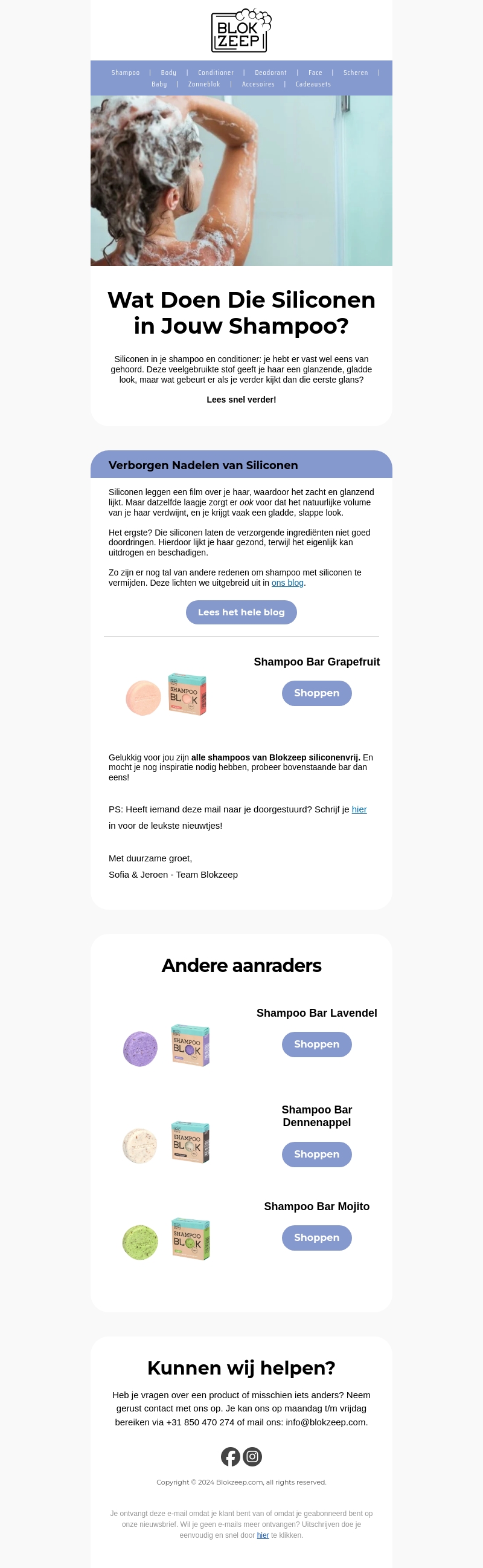 Siliconen in shampoo en conditioner geven je haar een glanzende look, maar wat gebeurt er echt met je haar? Deze nieuwsbrief van Blokzeep bespreekt de nadelige effecten van siliconen en introduceert siliconenvrije alternatieven die gezond zijn voor je haar.