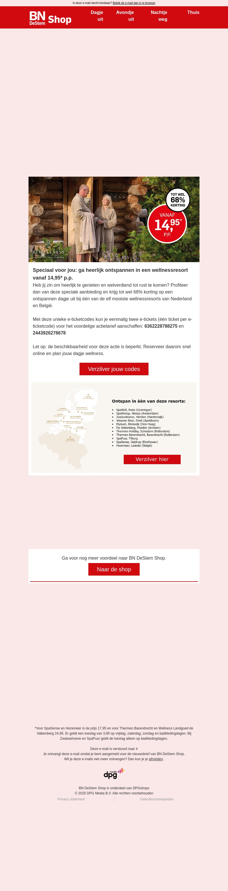 Profiteer van de unieke kans om te ontspannen in een van de beste wellnessresorts in Nederland en België, met een spectaculaire korting tot wel 68%! Met onze speciale actie kun je jezelf en een vriend verwennen met een e-ticket voor een onvergetelijke wellnesservaring vanaf slechts 14,95 per persoon.