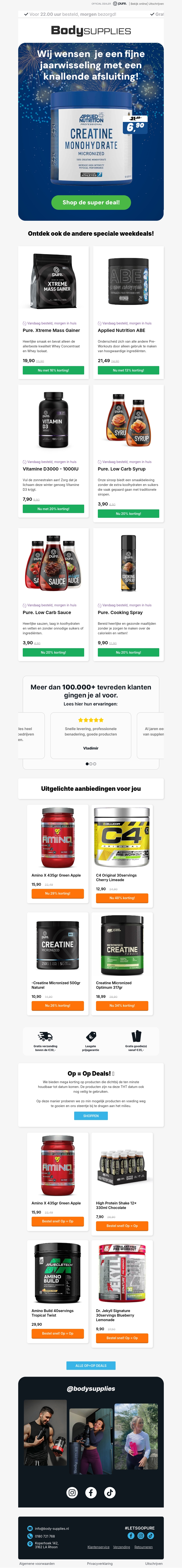 Begin het nieuwe jaar sterk met de knallende aanbiedingen van BodySupplies! Profiteer van geweldige kortingen op populaire producten zoals creatine en vitamines. Deze deals zijn perfect voor iedereen die hun fitnessdoelen wil bereiken. Wees er snel bij, want op is op! Lees verder voor meer details en andere speciale aanbiedingen.