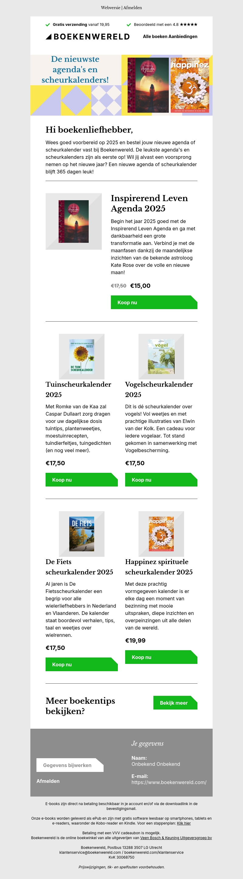 Wees goed voorbereid op 2025 met de nieuwste agenda's en scheurkalenders van Boekenwereld. Vind inspirerende en praktische planners die je helpen met je dagelijkse planning. Mis de kans niet om jouw favoriete agenda of scheurkalender als eerste te bemachtigen!