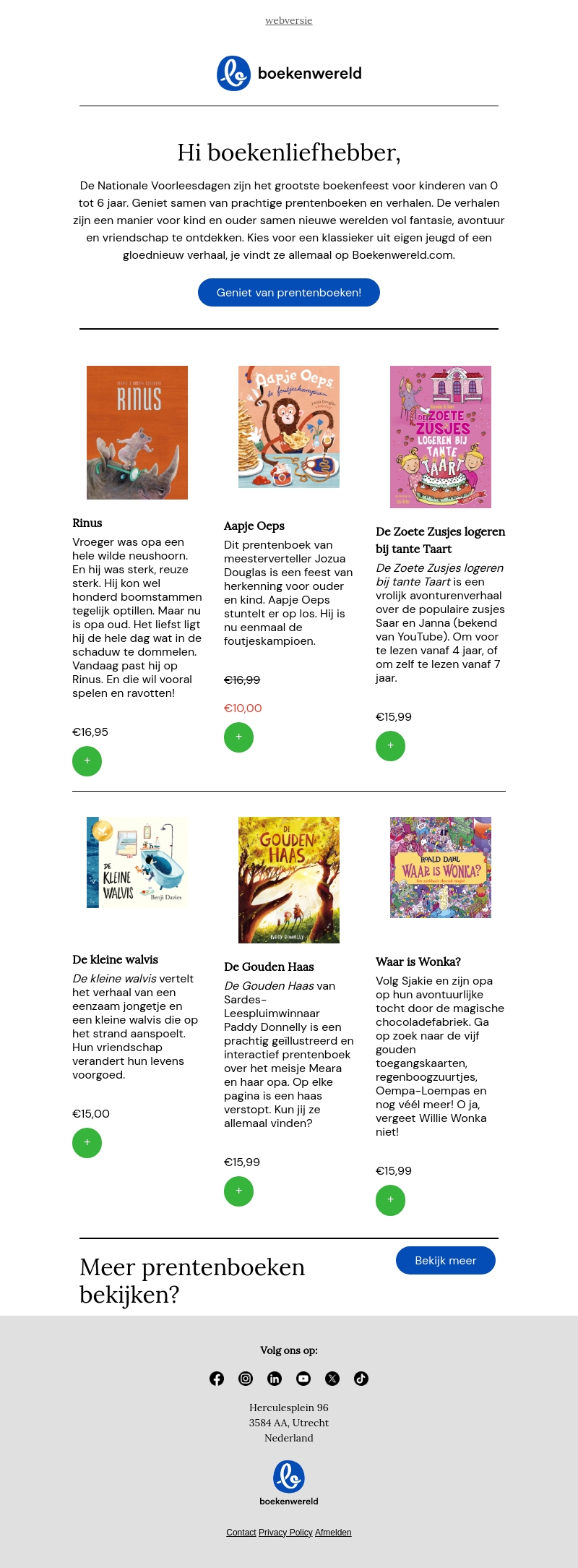 Boekenwereld viert de Nationale Voorleesdagen met een prachtige selectie prentenboeken. Van avonturen met neushoorns tot vrolijke zusjes, de verhalen zijn ideaal voor kinderen van 0 tot 6 jaar. Deze stapel favorieten biedt iets leuks voor elk kind, of ze nu willen lezen of voorgelezen willen worden. Maak deze dagen speciaal door samen de wereld van verhalen te ontdekken!