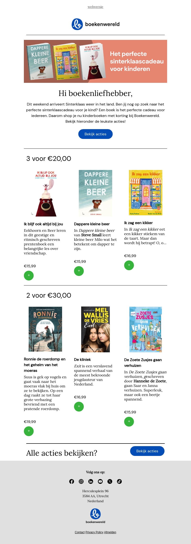 Bij Boekenwereld vind je het perfecte Sinterklaascadeau voor kinderen. Profiteer van de speciale aanbiedingen zoals 3 voor β¬20,00 en 2 voor β¬30,00 op kinderboeken. Ontdek hartverwarmende verhalen en spannende avonturen die zeker in de smaak vallen. Shop nu en geef een cadeau dat blijft boeien.