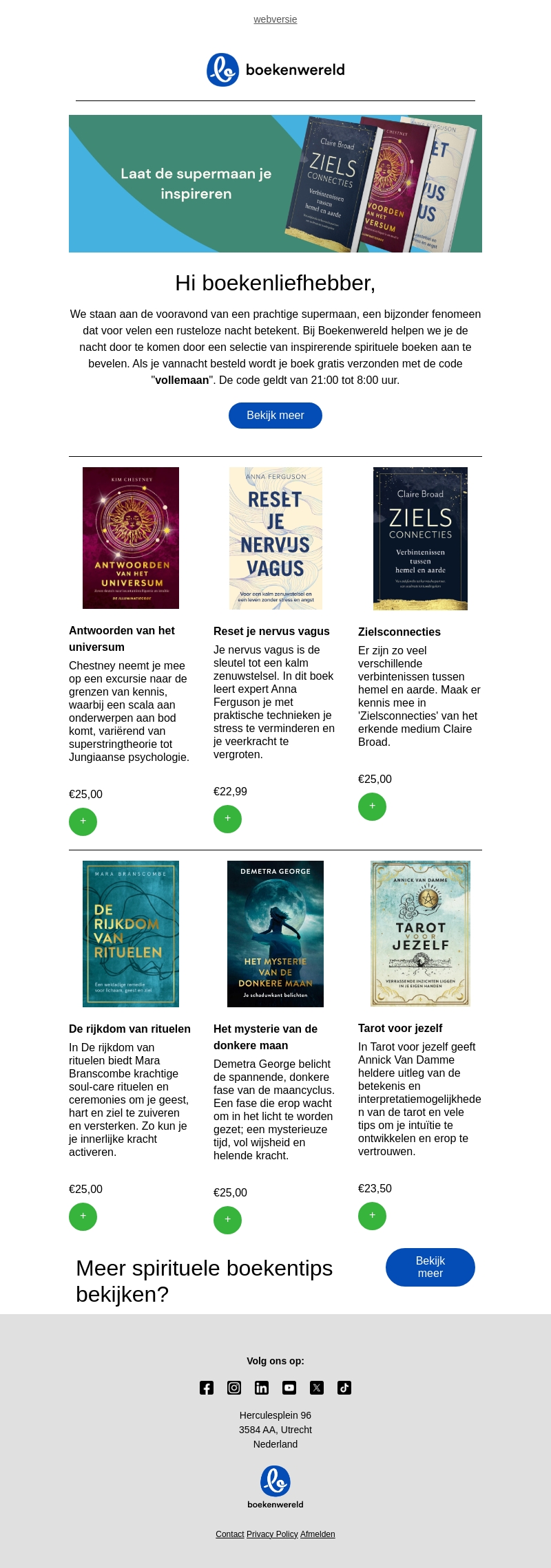 Sta op de vooravond van een schitterende supermaan met Boekenwereld. Ontdek een selectie van spirituele boeken die je helpen de nacht door te komen. Bestel nu en krijg gratis verzending met de code 'vollemaan'. Actie geldig van 21:00 tot 8:00 uur.