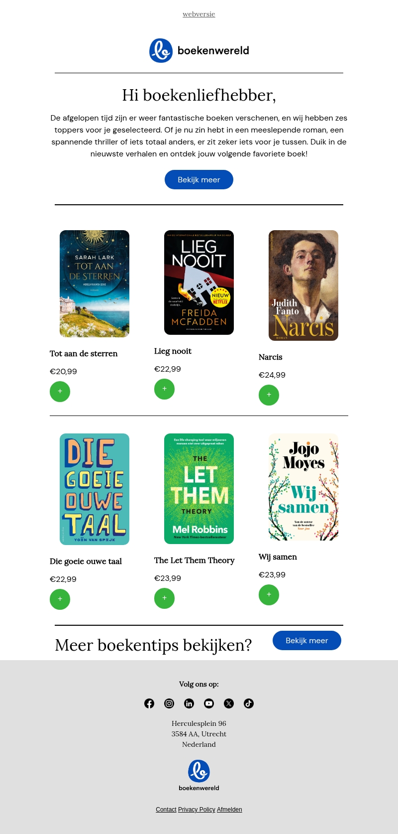 Boekenwereld presenteert zes nieuwe spannende boeken om je leeslijst mee te verrijken. Of je nu houdt van romans, thrillers of een beetje van beide, er is voor ieder wat wils. Ontdek titels als 'Tot aan de sterren', 'Narcis', en 'Wij samen'. Laat je meevoeren naar nieuwe werelden en geniet van je volgende favoriete boek. Mis deze unieke leestips niet!