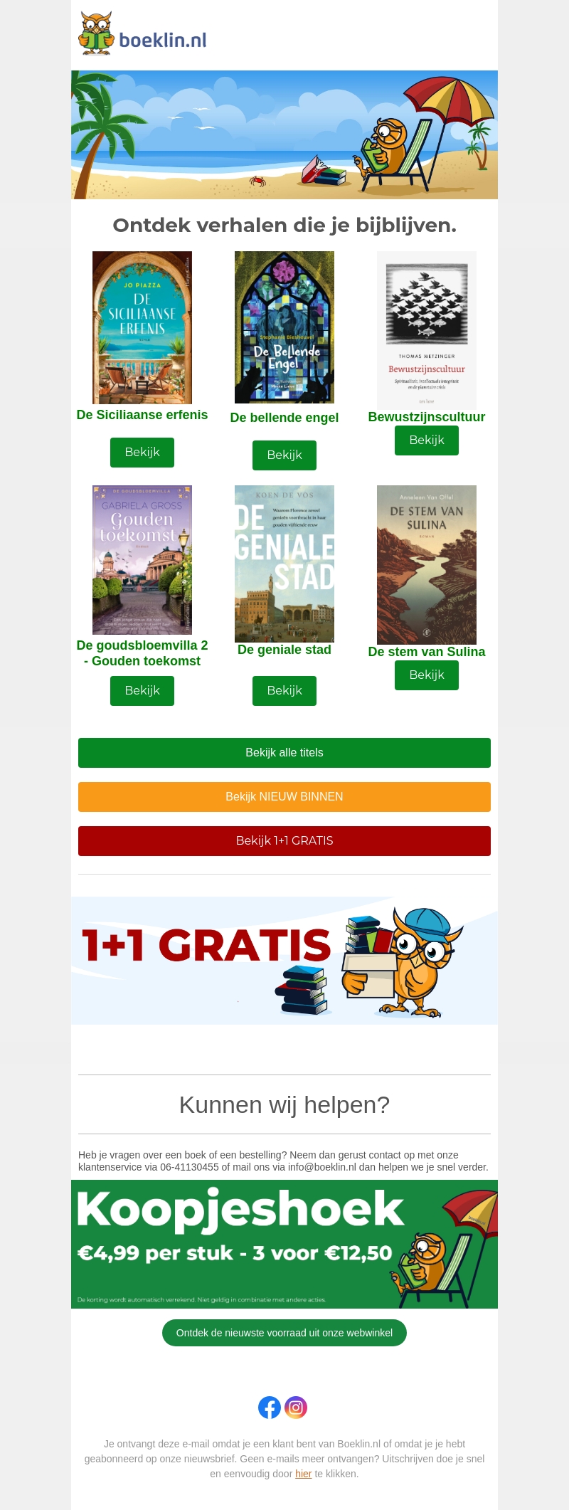 Maak kennis met de nieuwste titels die je niet wilt missen! Van spannende thrillers tot inspirerende boeken β Boeklin.nl heeft het allemaal. Profiteer van onze 1+1 gratis aanbieding en ontdek meer in de koopjeshoek.