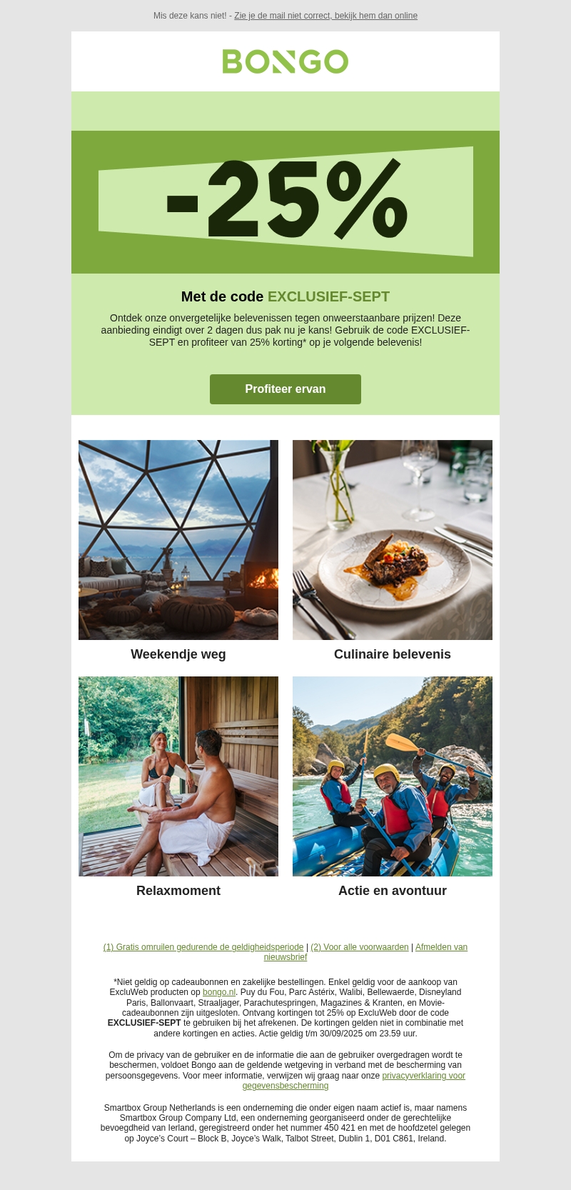 Sorry! 25% korting voor jouw volgende uitstap