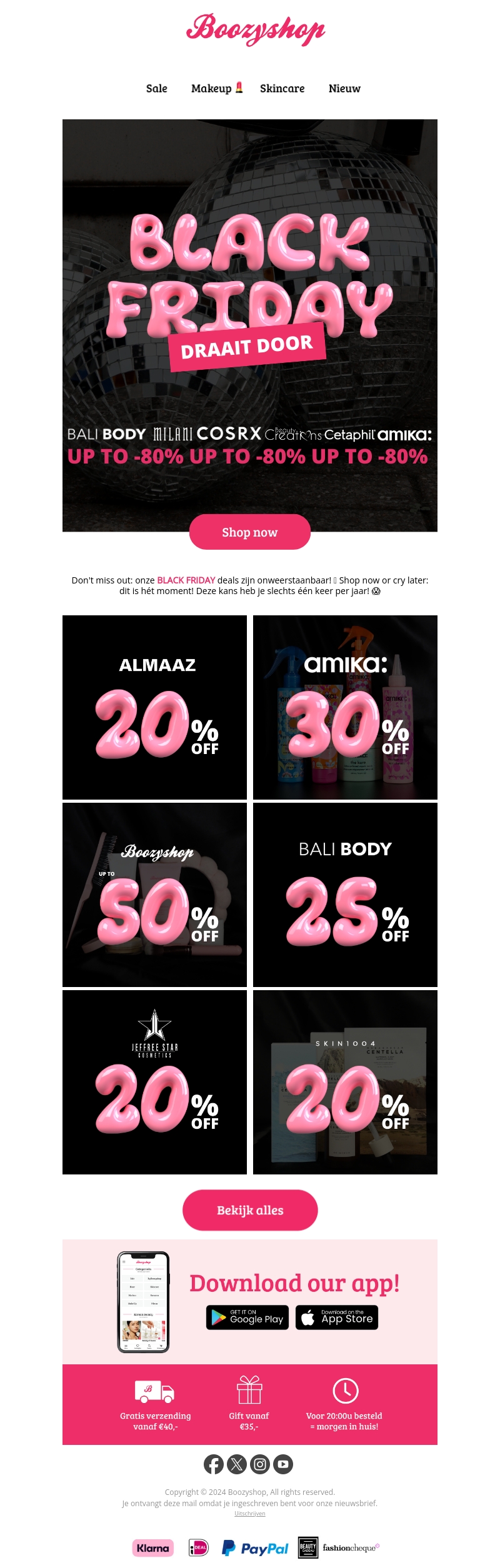 Mis de kans niet en shop nu tijdens de Boozyshop Black Friday uitverkoop. Met kortingen tot wel 80% op merken zoals Bali Body, Amika en meer, is dit hét moment voor beauty liefhebbers. Wacht niet langer, want deze deals komen maar één keer per jaar voorbij!