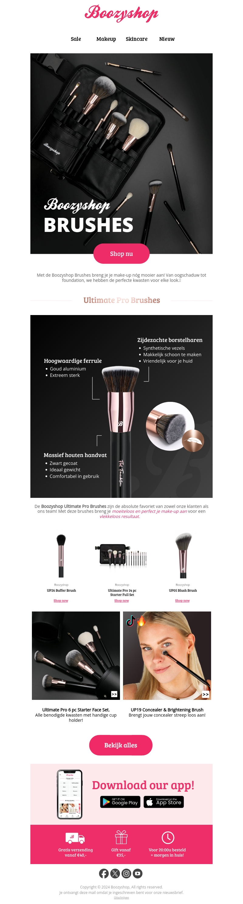 Maak kennis met de hoogwaardige Boozyshop Brushes! Met zijdezachte borstelharen en stevige handvaten zijn deze kwasten ideaal voor elke make-up routine. Ontdek nu onze Ultimate Pro Brushes en zie waarom ze de favoriet zijn van ons team. Gratis verzending vanaf €40. Shop nu!