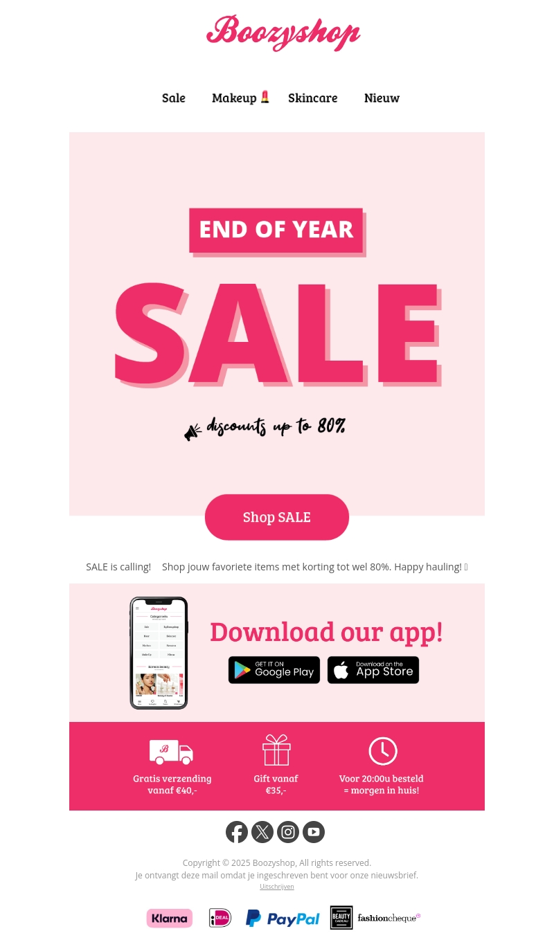 De Boozyshop Eindejaarsuitverkoop is nu begonnen! Geniet van kortingen tot 80% op je favoriete items. Gratis verzending vanaf €40 en cadeaus vanaf €35. Bestel voor 20:00 uur en ontvang je bestelling morgen al. Download nu onze app voor een betere winkelervaring.