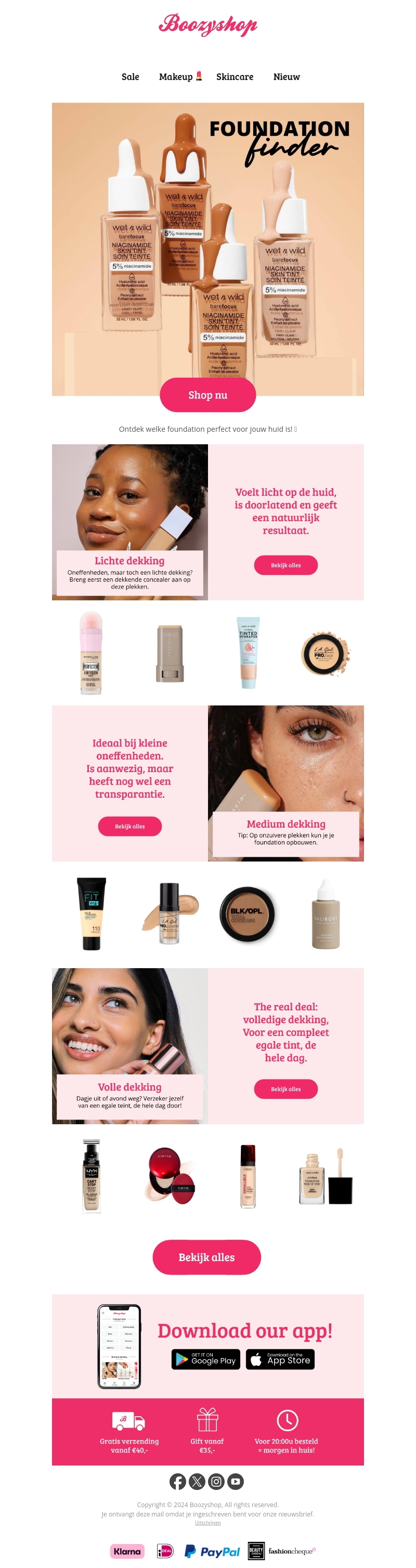 Vind bij Boozyshop de perfecte foundation voor jouw huid. Of je nu lichte, medium of volledige dekking zoekt, wij hebben de ideale producten voor jou. Ontdek nu ons assortiment!