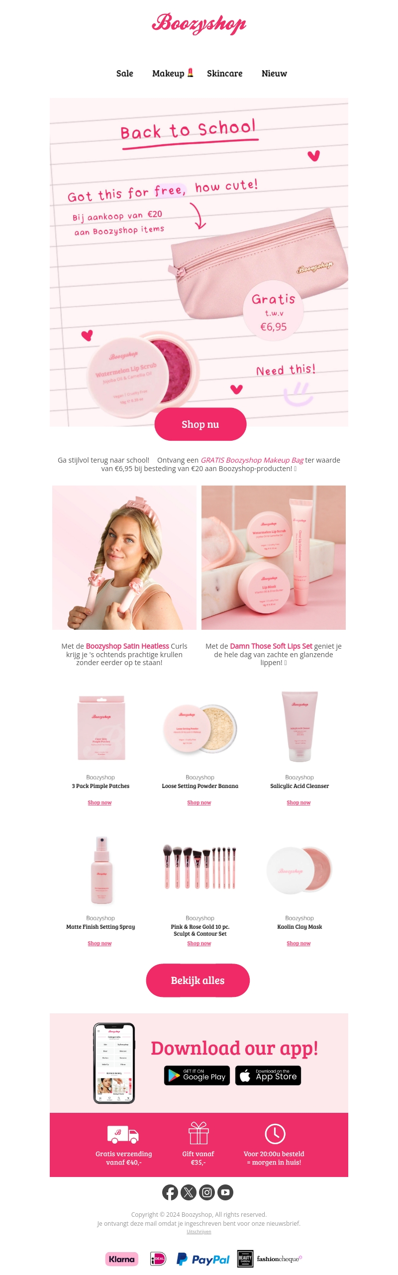 Ga stijlvol terug naar school met een GRATIS Boozyshop Makeup Bag ter waarde van €6,95 bij besteding van €20 aan Boozyshop-producten. Bekijk onze geweldige selectie van beautyproducten, inclusief huidverzorging en make-up, om je look compleet te maken. Shop nu en geniet van exclusieve aanbiedingen en kwaliteitsproducten!