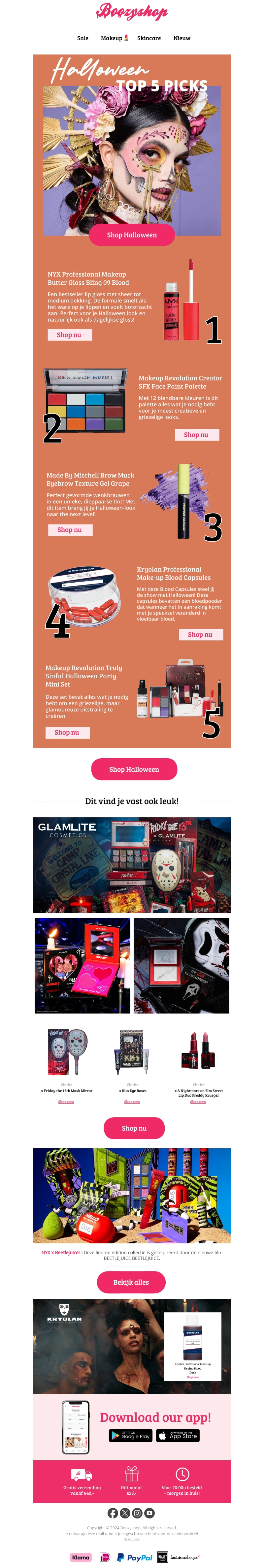 Deze nieuwsbrief presenteert de top 5 Halloween beauty picks. Van bloedrode lipglossen tot kleurrijke make-up paletten, we hebben alles wat je nodig hebt voor een spectaculaire look. Bekijk de producten en bereid je voor op een griezelig Halloween feestje!