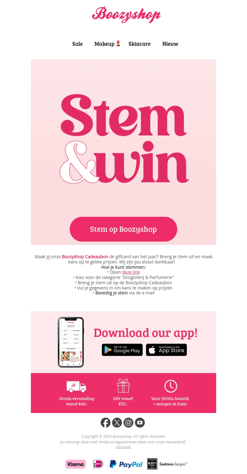 Doe mee met de spannende campagne van Boozyshop en stem op hun Cadeaubon als giftcard van het jaar. Door te stemmen, maak je kans op fantastische prijzen. Het proces is eenvoudig: open de link, kies de juiste categorie, en bevestig je stem via e-mail. Vergeet niet de app te downloaden voor nog meer aanbiedingen!