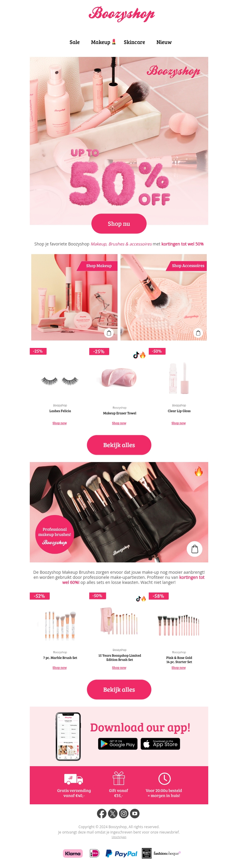 Ontdek de nieuwste aanbiedingen bij Boozyshop met kortingen tot maar liefst 50%! Shop je favoriete makeup, kwasten en accessoires en bespaar flink. Bekijk de speciale selectie en geniet van gratis verzending vanaf €40.