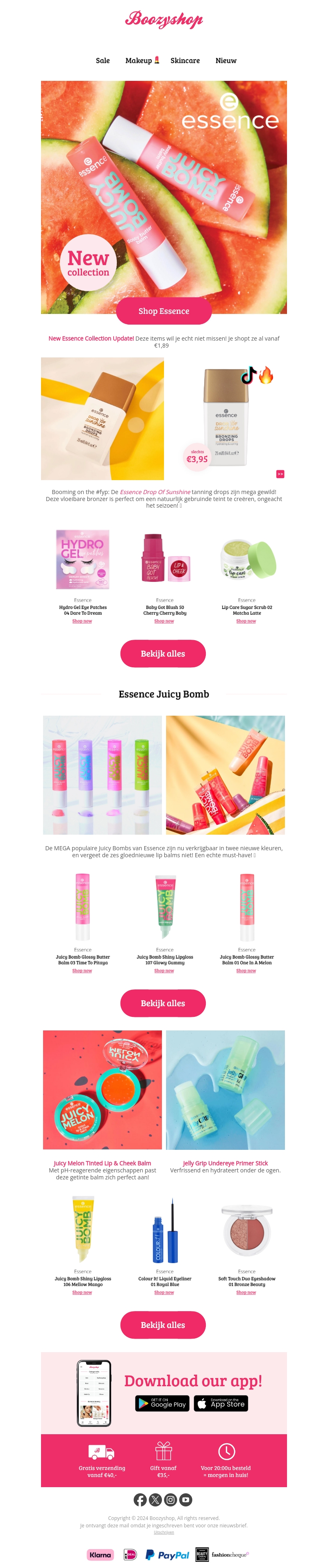 De nieuwe collectie van Essence is geland bij Boozyshop met een verscheidenheid aan opwindende producten. Van de populaire Juicy Bomb lippenbalsems tot de nieuwste bronzer, er is iets voor iedereen. Shop nu en mis het niet!