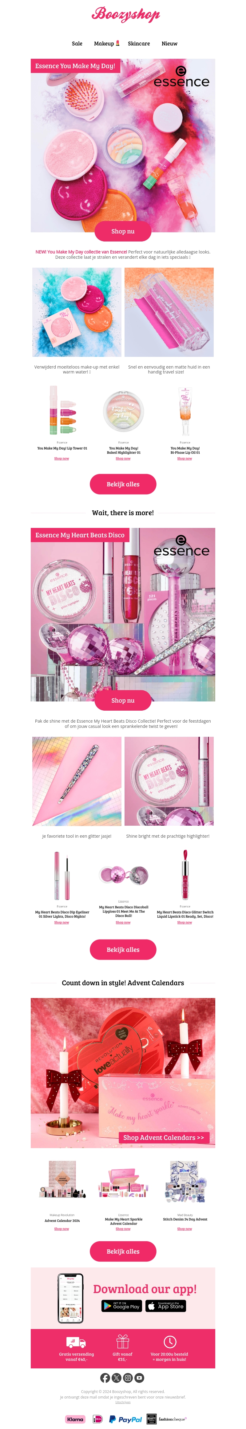Betreed de sprankelende wereld van Essence met de 'You Make My Day' en 'My Heart Beats Disco' collecties. Geniet van levendige kleuren en speciale aanbiedingen om je look compleet te maken. Perfect voor jezelf of als cadeau! Ontdek ook de betoverende adventskalenders. Mis deze kans niet om je make-up game te verbeteren.