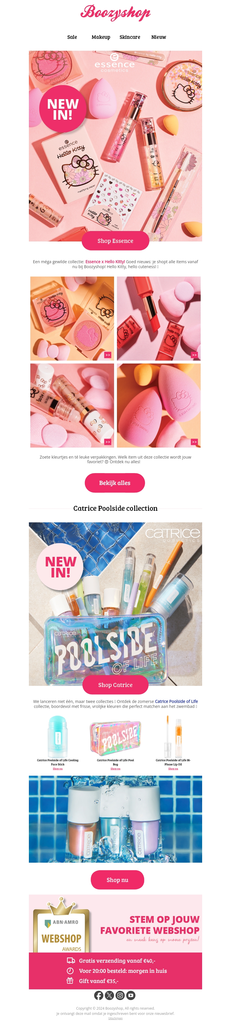 We presenteren met trots de nieuwe Essence x Hello Kitty collectie, boordevol schattige producten die je make-up routine zullen verfraaien. Daarnaast introduceren we de zomerse Catrice Poolside of Life collectie, perfect voor een frisse en vrolijke look bij het zwembad. Ontdek nu al deze must-have items bij Boozyshop!