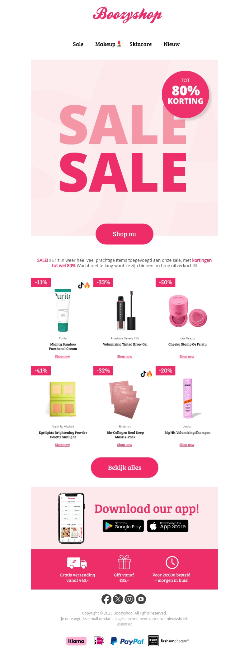 Duik in de spectaculaire sale bij Boozyshop met kortingen tot wel 80%! Ontdek een breed assortiment aan make-up en skincare producten. Wees er snel bij, want de voorraad is beperkt. Profiteer nu van gratis verzending vanaf €40,- en exclusieve cadeaus. Mis deze kans niet op jouw favoriete producten tegen gereduceerde prijzen.