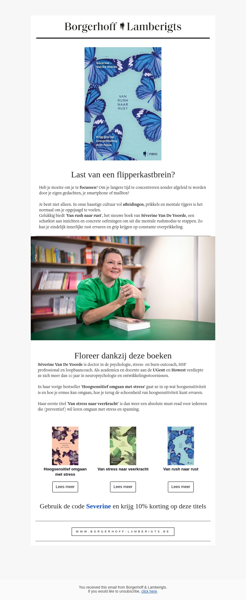 Heb je moeite om je focus te behouden in deze drukke wereld? Séverine Van De Voorde biedt in haar nieuwe boek 'Van rush naar rust' praktische inzichten en oefeningen om je aandacht te verbeteren. Leer hoe je innerlijke rust vindt en je brein kalmeert. Pak prikkels en afleiding aan met concrete oplossingen.