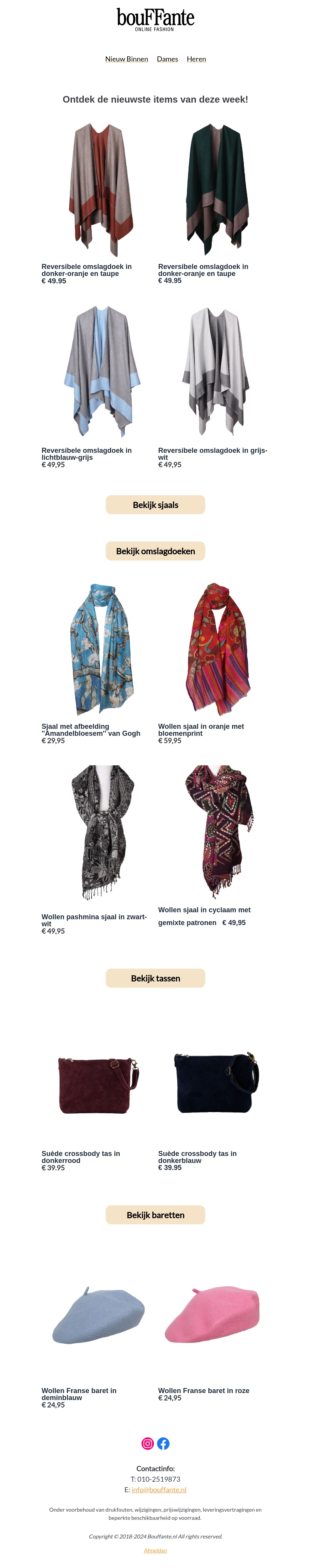 Bekijk de nieuwste mode-items van Bouffante, waaronder prachtige omslagdoeken, stijlvolle sjaals, praktische tassen en modieuze baretten. Ontdek wat er deze week is toegevoegd aan onze collectie en sla je slag met de nieuwste trends.