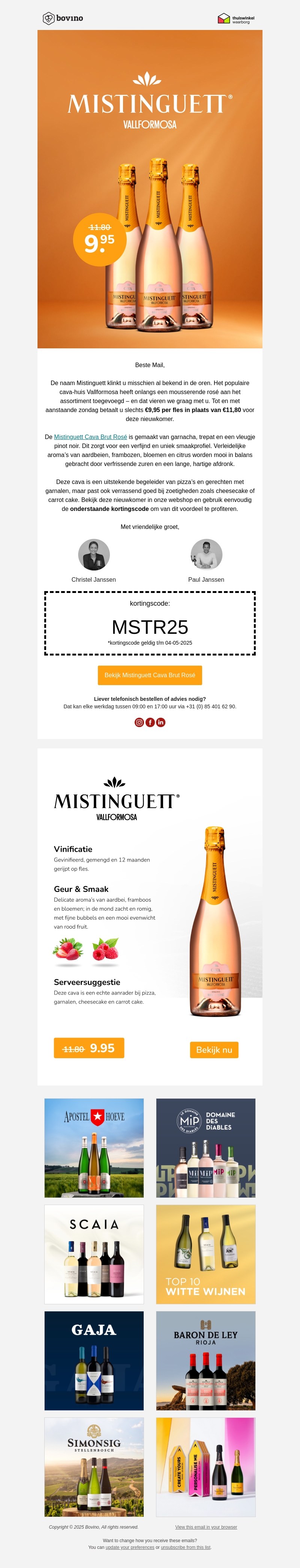 🔔 Mistinguett Cava Rosé – Tijdelijk voor €9,95 per fles.