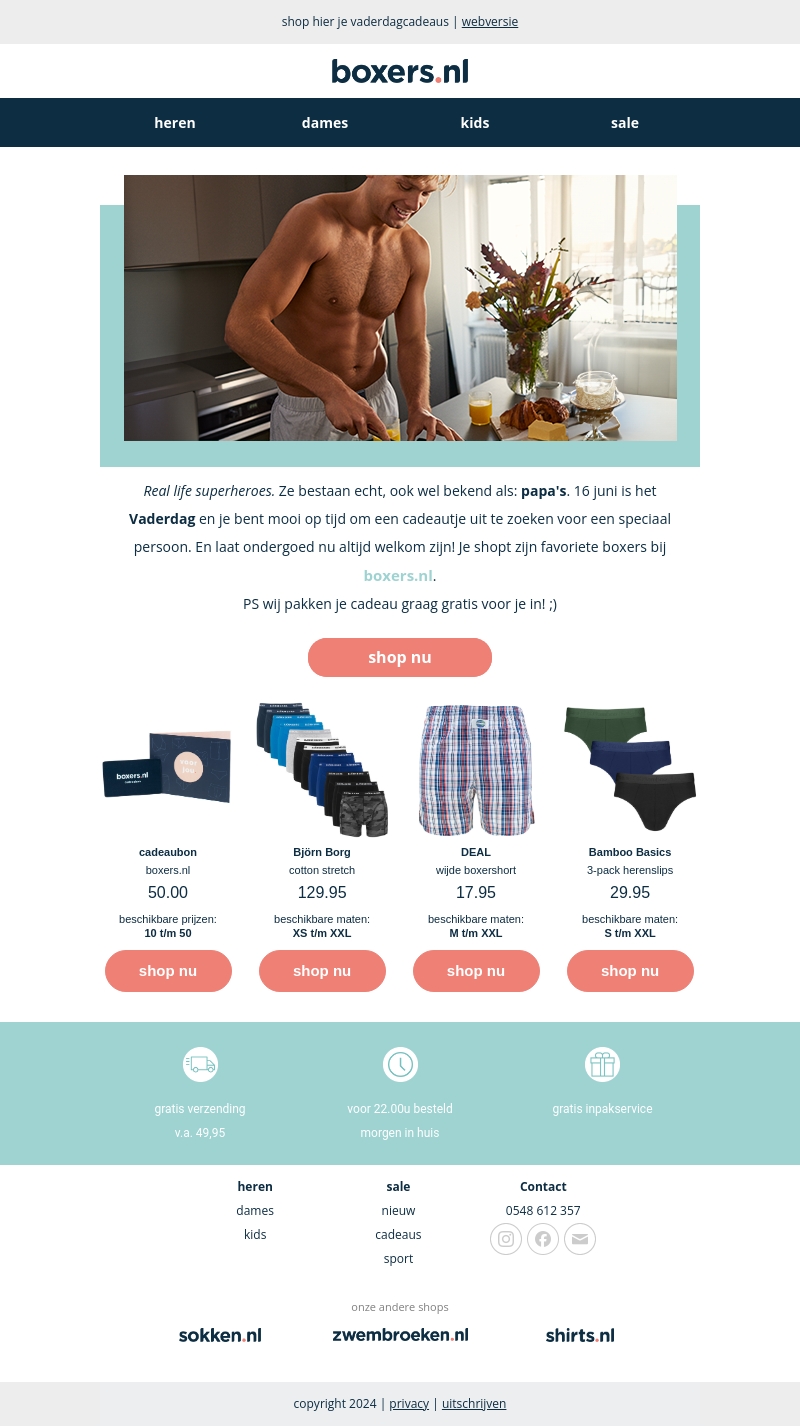 Real life superheroes bestaan echt: papa's! Vaderdag is op 16 juni en het is de perfecte tijd om een geweldig cadeau te vinden. Ontdek de beste boxers en cadeaubonnen voor je vader bij boxers.nl.