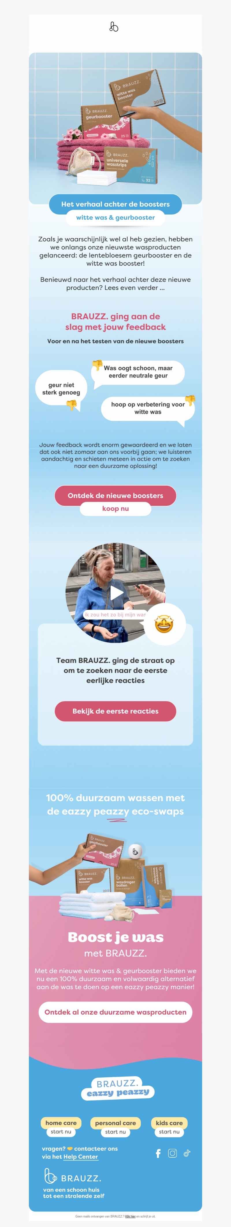 De nieuwste wasproducten van BRAUZZ. zijn hier! Met focus op duurzaamheid en effectiviteit, ontdek je hoe onze geur- en witte wasboosters je wasroutine verbeteren. Lees over de feedback uit de straat en maak deel uit van een schone toekomst!