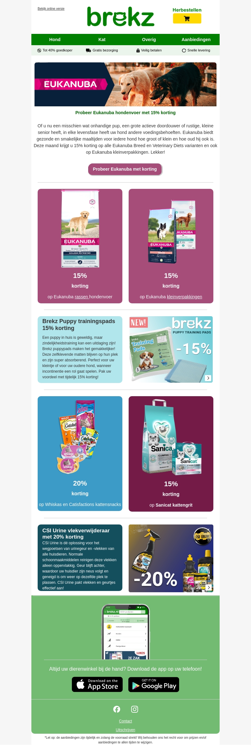 Of u nu een pup, een actieve of een senior hond heeft, Eukanuba heeft voer voor elke levensfase. Deze maand biedt Brekz 15% korting op alle Eukanuba Breed en Veterinary Diets hondenvoer. Kleinere verpakkingen zijn ook inbegrepen. Bestel nu en zorg ervoor dat uw hond altijd het beste voer krijgt!
