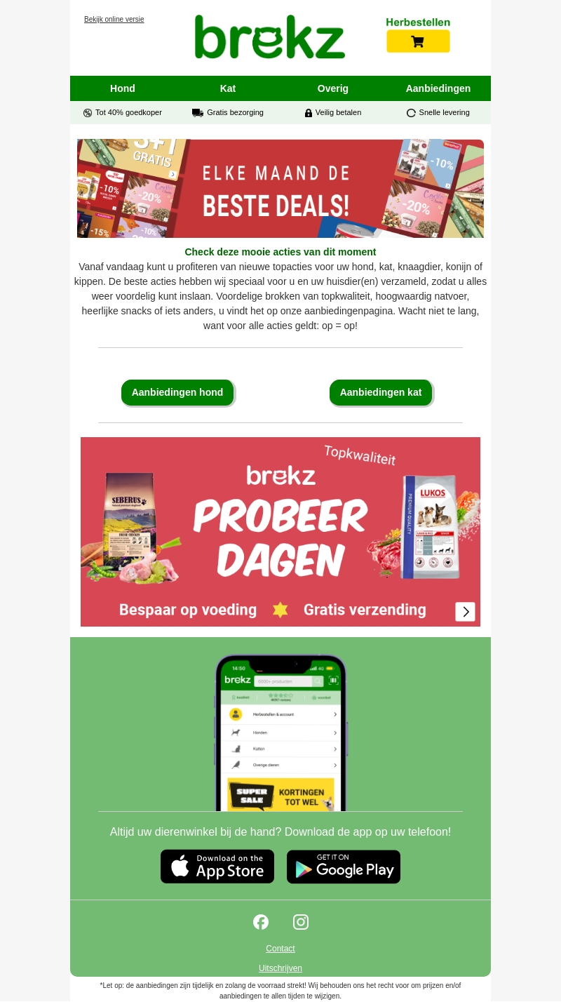 Vanaf vandaag kunt u profiteren van nieuwe topacties voor uw huisdier. De beste acties hebben wij speciaal voor u en uw huisdier(en) verzameld. Voordelige brokken van topkwaliteit, hoogwaardig natvoer, heerlijke snacks en meer. Bezoek onze aanbiedingenpagina voor alle actuele deals. Wacht niet te lang, want op = op!