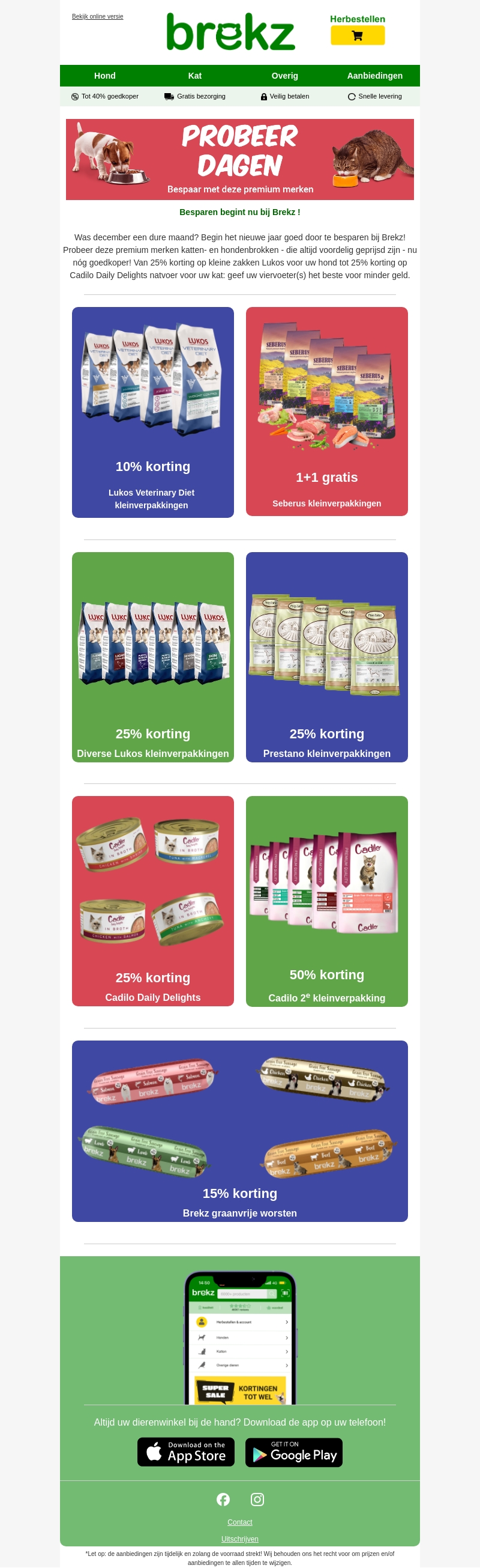 Begin het nieuwe jaar met geweldige besparingen op premium huisdierproducten bij Brekz. Profiteer van kortingen tot 50% op merken zoals Lukos, Seberus en Cadilo. Ontvang ook 15% korting op Brekz graanvrije worsten. Zorg voor het beste voor uw huisdier en uw portemonnee met deze speciale aanbiedingen.