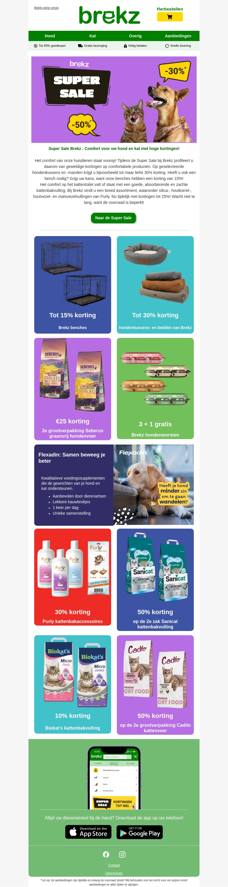 Ontdek de Super Sale van Brekz met fantastische kortingen voor uw hond en kat. Geniet van 30% korting op hondenkussens en katteneetgoed. Haal nu al uw favoriete producten in huis met kortingen tot 50%! Mis deze kans niet om uw huisdier te verwennen met kwaliteitsproducten tegen gereduceerde prijzen. Zorg dat u snel bent want op=op!