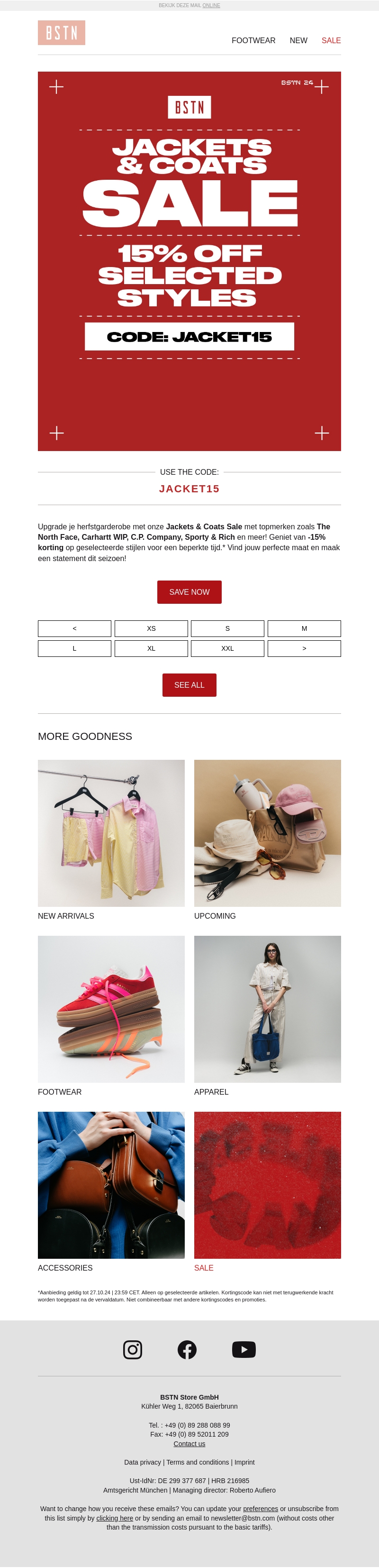 Ontdek de geweldige kortingsactie op jassen en mantels bij BSTN. Profiteer van 15% korting op topmerken zoals The North Face en Carhartt WIP. Sla je slag en upgrade je herfstgarderobe. Actie geldig voor een beperkte tijd, mis het niet!