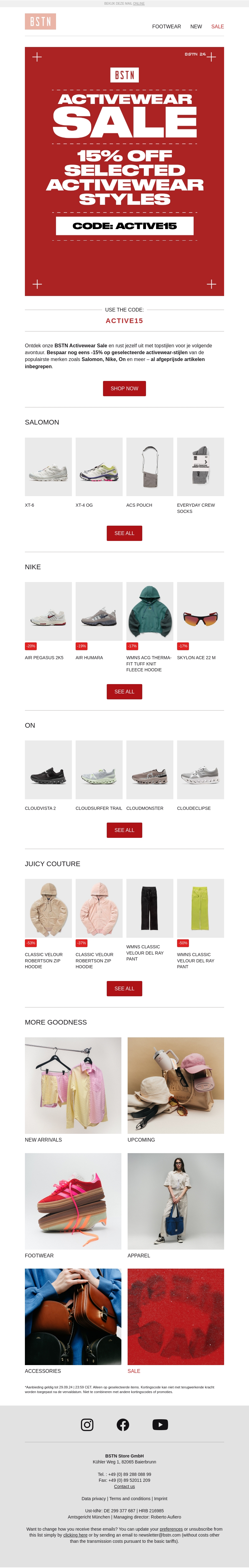 Ontdek de geweldige Activewear Sale bij BSTN en bespaar 15% op geselecteerde stijlen. Van topmerken zoals Salomon, Nike en meer! Gebruik de kortingscode ACTIVE15.