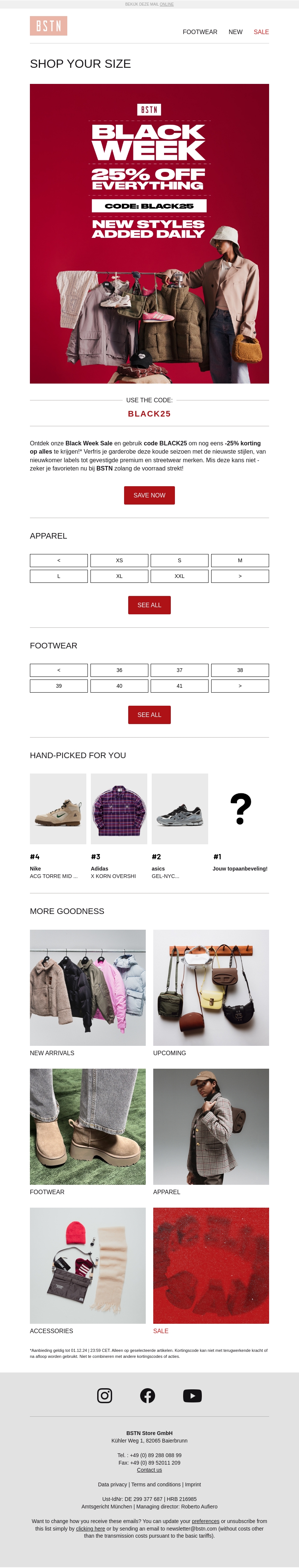Beleef de ultieme shopervaring tijdens onze Black Week Sale. Geniet van 25% korting op een breed scala aan producten. Verwen jezelf met de nieuwste stijlen en premium merken. Ontdek de nieuwste mode en schoenen. Wacht niet langer en grijp je kans vóórdat de voorraad op is!
