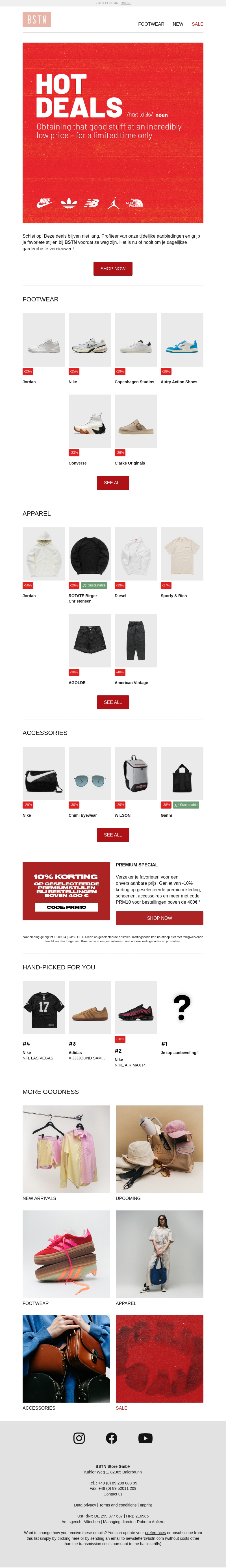 Deze week bieden wij enorme kortingen op een breed scala aan producten. Van Nike schoenen en Jordan jassen tot premium accessoires. Grijp je kans om fantastische producten te kopen tegen gereduceerde prijzen. Exclusieve deals voor een beperkte tijd!