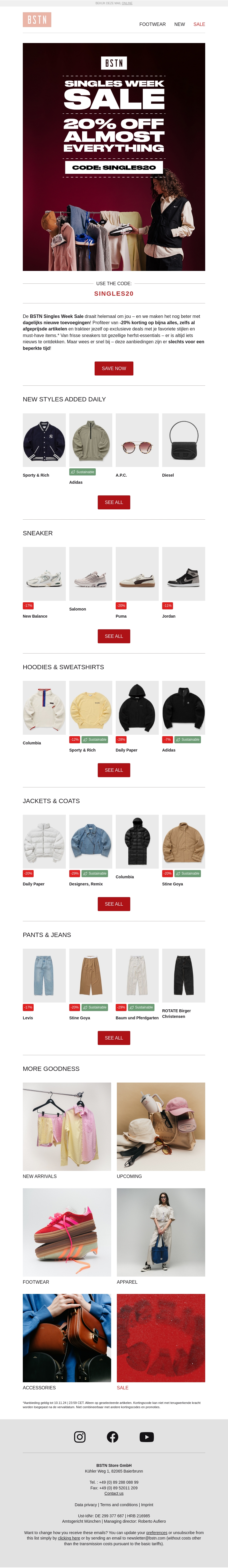 Singles Week Sale bij BSTN! -20% korting op bijna alles 💯