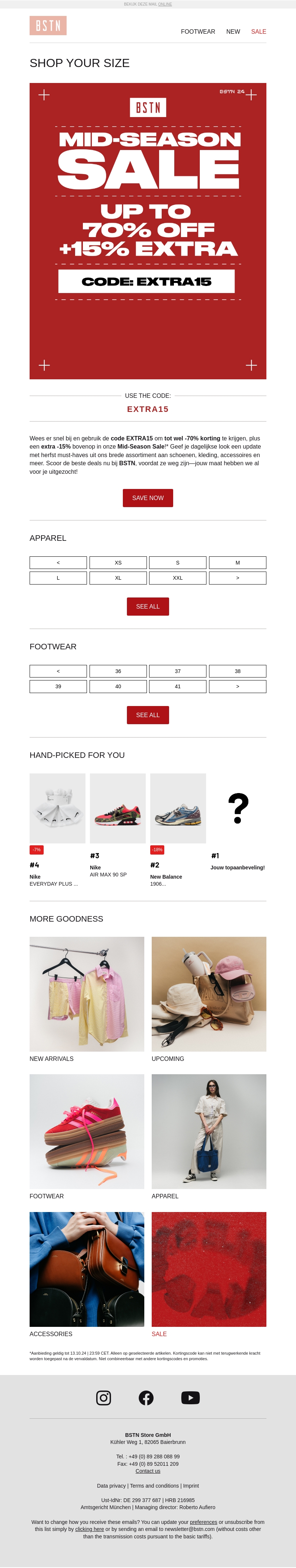 Bezoek onze Mid-Season Sale voor kortingen tot 70% op mode en accessoires. Ontvang extra 15% korting met de code EXTRA15. Vind jouw perfecte kleding en schoenen in diverse maten. Geniet van nieuwe arrivals en specials, aangepast voor dagelijks gebruik. Mis deze unieke kans niet en shop nu jouw favoriete items!