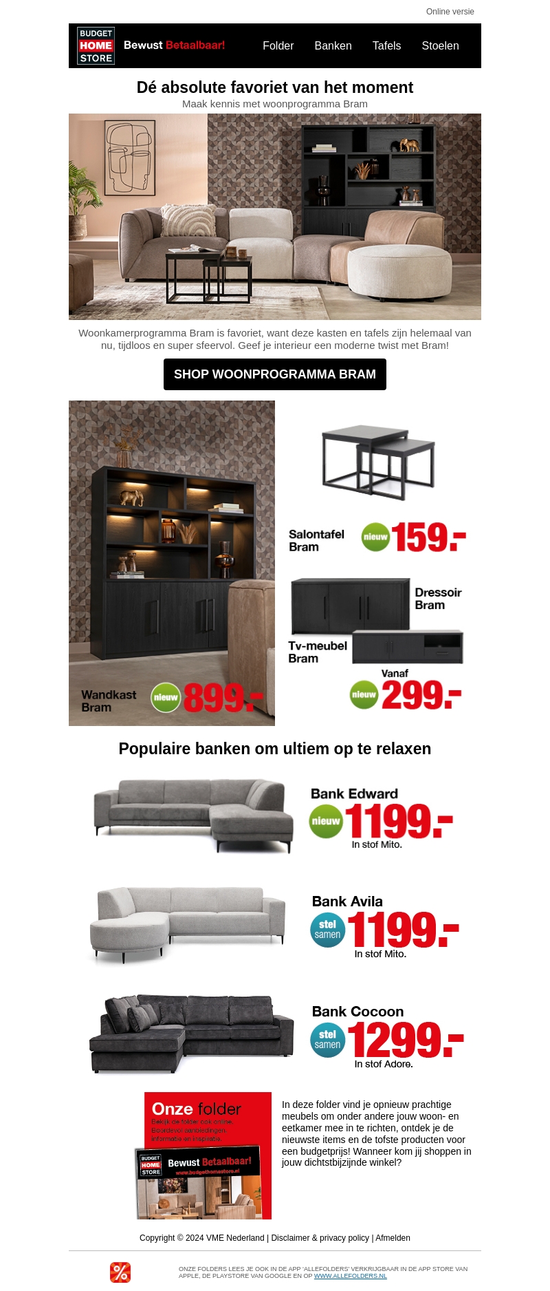 Maak kennis met woonprogramma Bram, onze nieuwste en meest populaire collectie van het moment. Deze moderne en tijdloze meubelstukken zijn perfect voor een stijlvolle en comfortabele woonkamer. Ontdek nu de salontafel, dressoir, tv-meubel en wandkast uit de Bram collectie, allemaal voor aantrekkelijke prijzen.