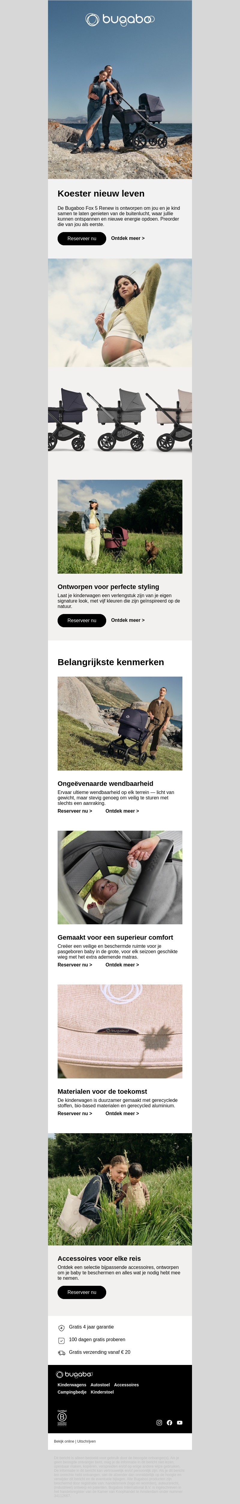 De Bugaboo Fox 5 Renew biedt een unieke combinatie van wendbaarheid, comfort en stijl. Ontworpen voor elke ouder en elk avontuur, maakt deze kinderwagen het leven eenvoudiger. Creëer de perfecte reiservaring voor jou en je kind. Geniet van materialen voor de toekomst en superieur comfort.