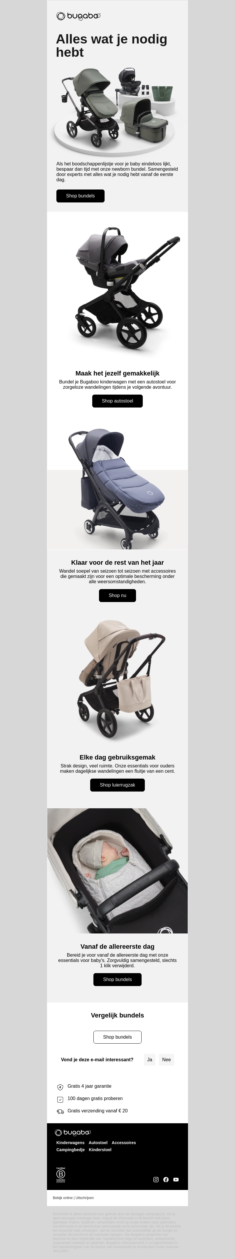 Ontdek de ultieme kinderwagenbundels die aan al je behoefte voldoen. Van autostoelen tot weerbestendige accessoires, wij hebben alles wat je nodig hebt vanaf de eerste dag. Shop nu en geniet van gratis verzending en een proefperiode van 100 dagen. Met ons strakke design en ruime opties maken we ouderschap eenvoudiger.