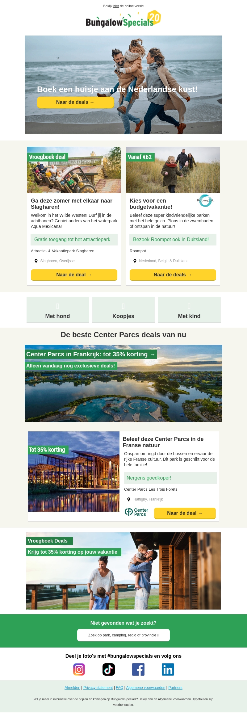 Verken deze zomer de beste aanbiedingen voor een vakantie aan de Nederlandse kust. Geniet van exclusieve kortingen bij Center Parcs in Frankrijk en ontspan in de natuur. Boek nu en ervaar avonturen in Slagharen of kies voor budgetvriendelijke vakanties in Roompot. Mis de exclusieve deals niet!