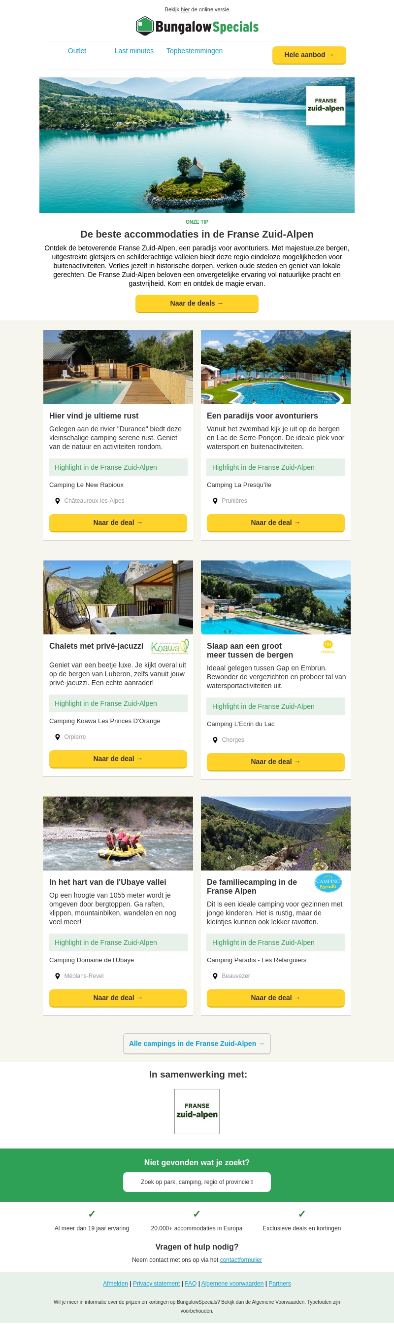 Ontsnap naar de betoverende Franse Zuid-Alpen en ervaar de ultieme vakantie. Kies uit serene campings, avontuurlijke locaties en luxe chalets. Geniet van talloze buitenactiviteiten en prachtige landschappen. Bekijk nu onze aanbiedingen!