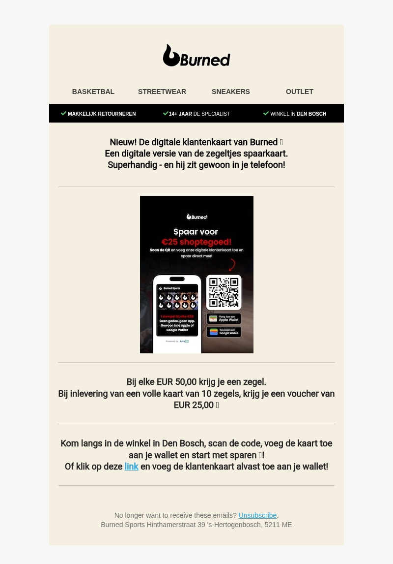 Nieuw bij Burned: de digitale klantenkaart π§‘ Scan & Spaar!
