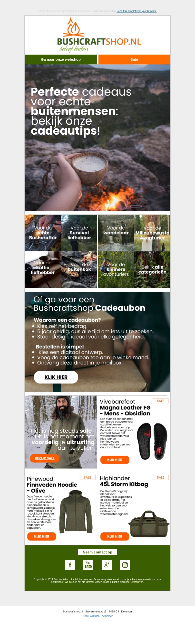 Op zoek naar het perfecte cadeau voor avonturiers? Bekijk onze cadeautips en profiteer van de voordelige uitverkoop. Kies uit een breed scala aan producten zoals survivaluitrusting, wandelschoenen, en meer. Mis de kans niet om je uitrusting voordelig aan te vullen.