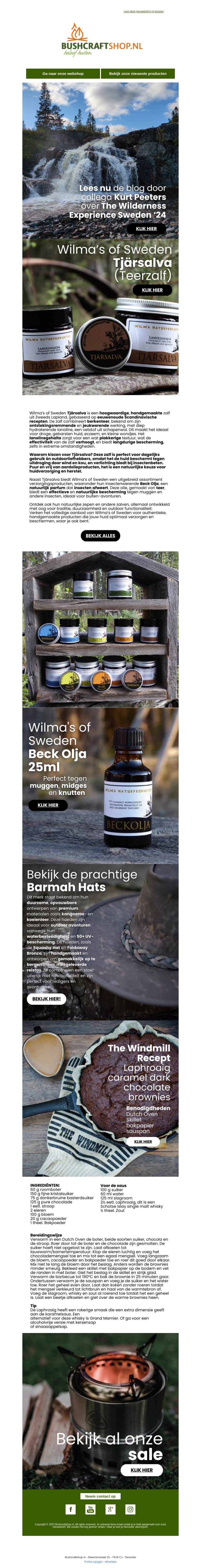 Ervaar de authentieke huidverzorging van Wilma's of Sweden, geïnspireerd door de natuur van Lapland. Met producten zoals tjärsalva en beck olja biedt Wilma's natuurlijke oplossingen voor huidproblemen. Vanwege de hoge kwaliteit en unieke ingrediënten trekt Wilma's steeds meer tevreden gebruikers aan. Verken de collectie en ontdek de kracht van pure natuur. Laat je inspireren door de oerkracht van Laplandse bossen. Bestel vandaag nog bij Bushcraftshop!