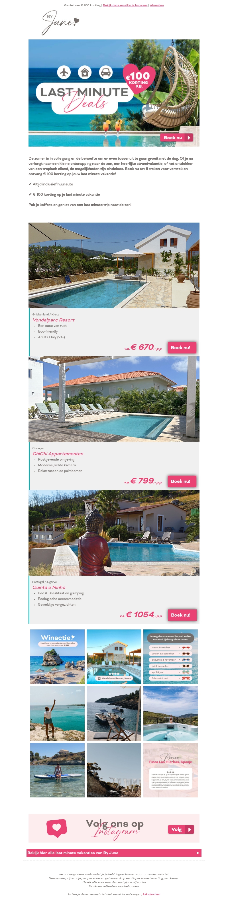 De zomer is in volle gang en het is de perfecte tijd voor een last minute zonvakantie. Boek nu en ontvang €100 korting per persoon. Ontdek tropische eilanden, prachtige stranden en luxe accommodaties. Geniet van het moment en ontspan! Kies uit onze zorgvuldig geselecteerde resorts voor een ongeëvenaarde vakantie-ervaring.